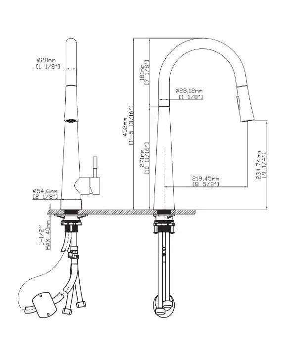 - ברז מטבח 2 מצבים, נשלף