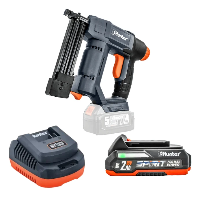 אקדח סיכות ומסמרים עד 32 מ"מ נטען 18V (גוף בלבד) של Hunter. האקדח הוא כלי אידיאלי עבור הידוק, עיטור, קישוט (במשקל קל), התקנת יריעות בידוד, התקנות של סנטף לפרגולה, עבודות בעץ, בניית סוכה, תיקונים ביתיים ועוד.