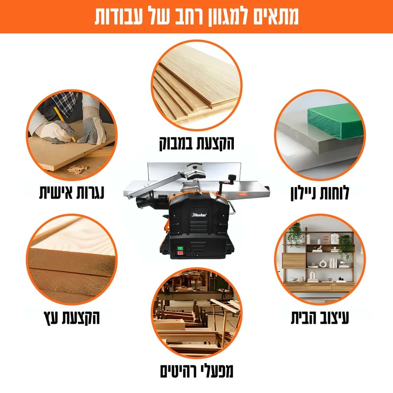 - שילוב מנצח של פונקציונליות כפולה - המכשיר מציע הן הקצעה עליונה והן עיבוד תחתון, מה שהופך אותו לפתרון מושלם לנגרים מקצועיים. עם רוחב הקצעה מרשים של 204 מ"מ ויכולת עיבוד חומרים בעובי של 5-120 מ"מ, אין פרויקט שהמקצוע הזה לא יכול להתמודד איתו.