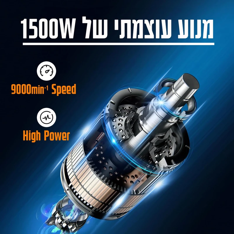- עוצמה בלתי מתפשרת - מנוע חזק במיוחד בהספק 1500W ו-1500 כ"ס, המספק מהירות סיבוב מרשימה של 9,000 סל"ד.