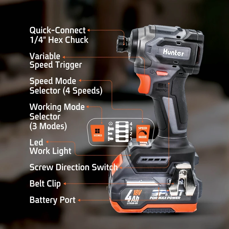 - מברגת אימפקט בראשלס Gen 3 - הדור החדש של העוצמה - מברגת האימפקט המהפכנית של Hunter מציבה סטנדרט חדש בתעשייה. מנוע בראשלס מתקדם בהספק 500W מספק עוצמה, יעילות ואורך חיים יוצאי דופן בגוף קומפקטי במיוחד.
