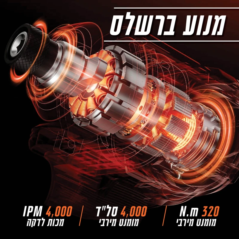 - 3 מצבי עבודה מתקדמים - מצב הברגה רגיל, מצב אימפקט למשימות קשות ומצב מיוחד לעבודות דיוק. בשילוב עם 4000 מכות לדקה, מקבלים ביצועים שאין שני להם בקטגוריה.