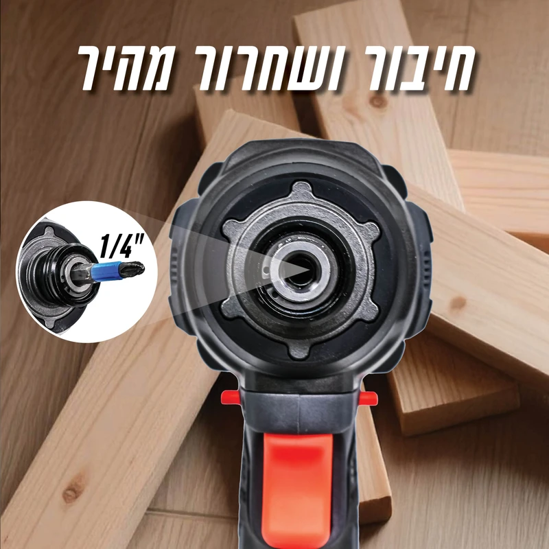 - חיבור אוניברסלי 1/4 אינץ' - התפסנית הסטנדרטית מקבלת את כל הביטים הנפוצים בשוק. החלפה מהירה ביד אחת חוסכת זמן יקר ומאפשרת מעבר חלק בין משימות.