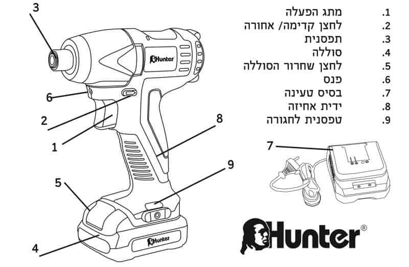 | שם מוצר: | מברגת אימפקט 12V | עם סוללה אחת 1.5A | כולל מטען | Hunter |