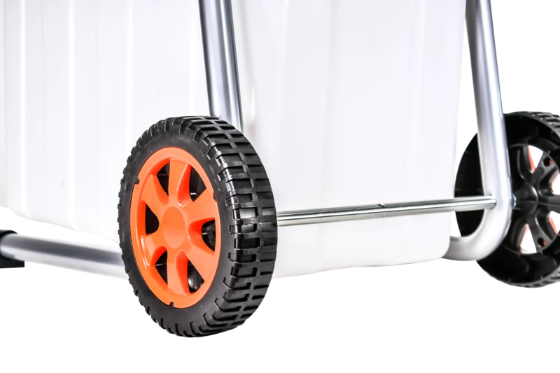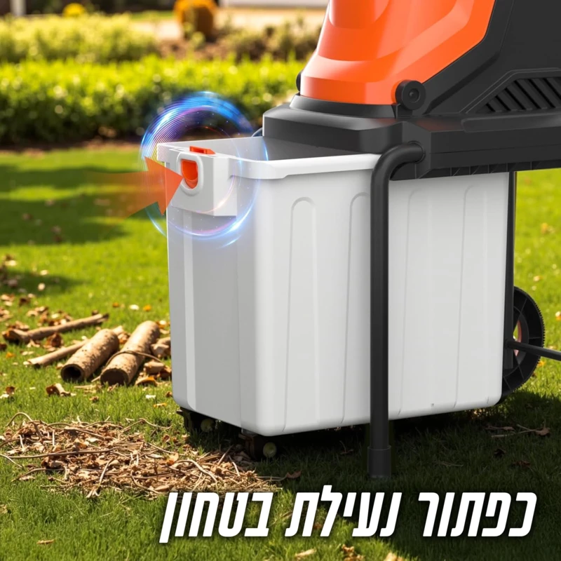 - מיכל ענק של 60 ליטר וגלגלי 7" - המיכל הגדול חוסך ריקונים תכופים, בעוד הגלגלים הגדולים מאפשרים ניידות קלה בכל סוגי השטח. המכונה פועלת ברמת רעש של 94dB בלבד - שקטה יחסית למרסקות בקטגוריה זו.