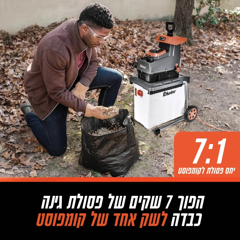 - מרסקת הגזם החזקה ביותר בקטגוריה - 2800W של עוצמה - מרסקת הגזם החשמלית של Hunter מציבה רף חדש עם מנוע 2800W (3.8 כ"ס) המסוגל לטחון ענפים עבים עד 44 מ"מ. הפתרון המושלם לבעלי גינות פרטיות וגננים מקצועיים.