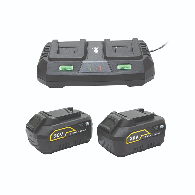 מטען כפול 20V + סוללות 2x4Ah GPT