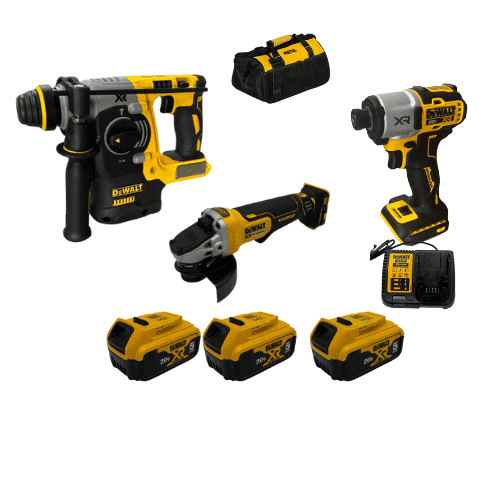 סט 3 כלים | שלוש סוללות 5Ah ומטען ותיק | DeWALT