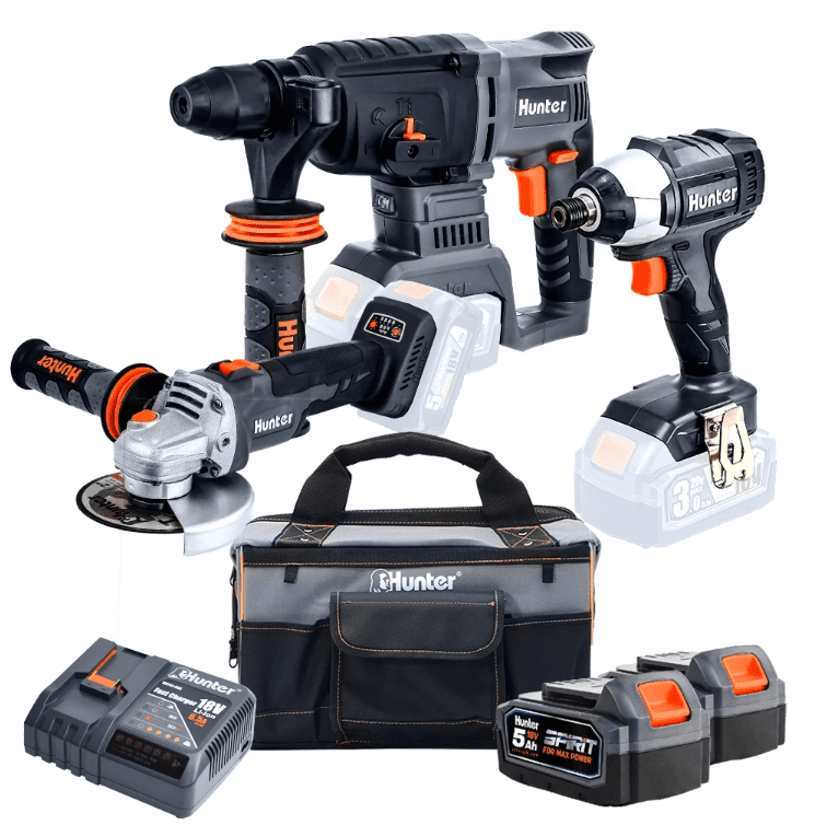 סט 3 כלים נטענים 18V BL זוג סוללות 5Ah ומטען מהיר+תיק
