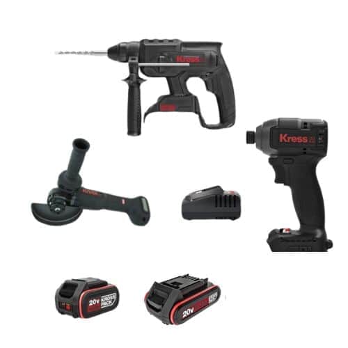 סט 3 כלים | סוללה 4Ah + סוללה 2Ah ומטען | KRESS 20V