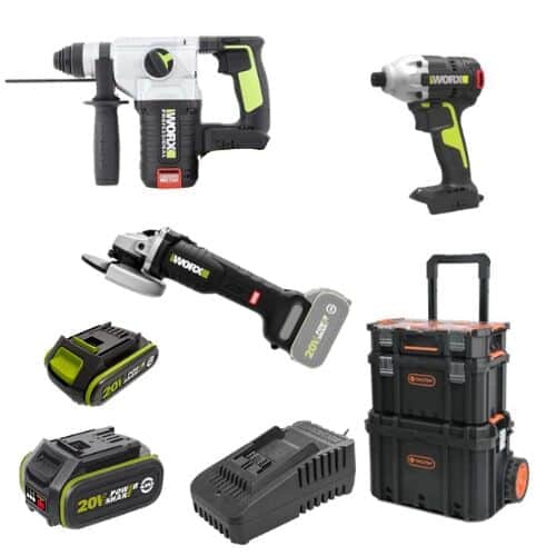 סט 3 כלים | סוללה 4Ah וסוללה 2Ah | מטען וארגז | WORX