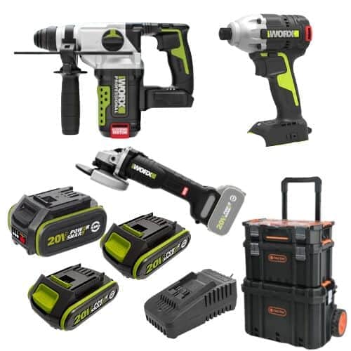 3 כלים | שתי סוללות 2Ah + סוללה 4Ah ומטען וארגז | WORX 20V