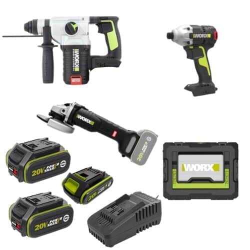 סט 3 כלים | שתי סוללות 4Ah סוללה 2Ah מטען וארגז | WORX 20V