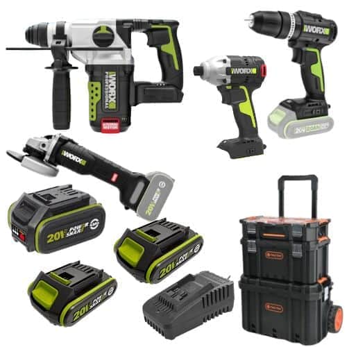 4 כלים | שתי סוללות 2Ah + סוללה 4Ah ומטען וארגז | WORX 20V