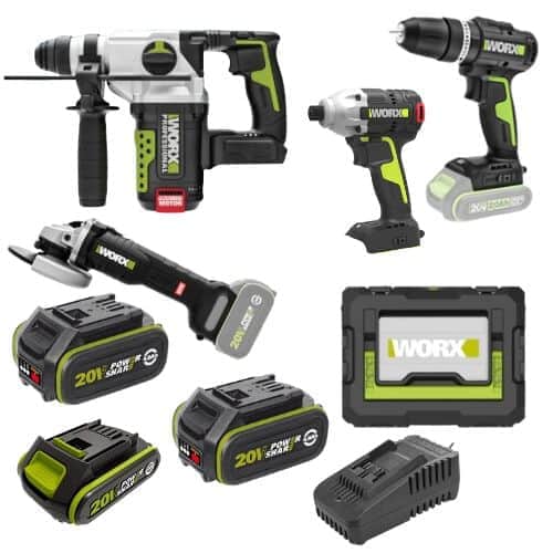 4 כלים | שתי סוללות 4Ah + סוללה 2Ah ומטען וארגז | WORX 20V