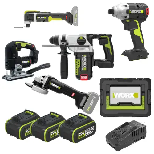 המכיל 4 כלים מבית WORX כולל 3 סוללות 4HA מטען WORX