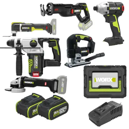 המכיל 6 כלים מבית WORX כולל 2 סוללות 4HA מטען WORX
