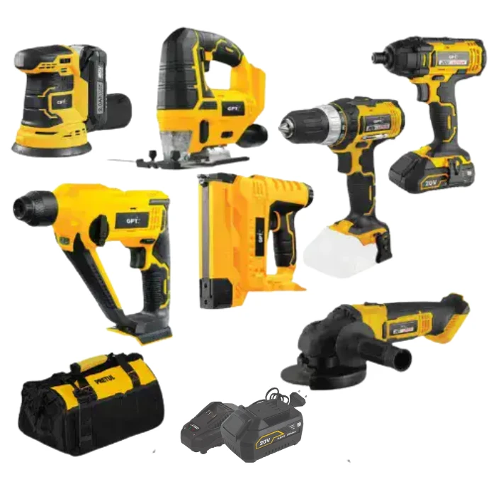 סט 7 כלים מבית מותג כלי העבודה GPT אשר מורכב מ 7 כלים שונים + סוללה 2HA סוללה 4HA ומטען.