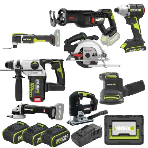 המכיל 8 כלים מבית WORX כולל 3 סוללות 4HA מטען WORX