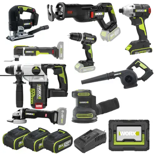 המכיל 9 כלים מבית WORX כולל 3 סוללות 4HA מטען WORX