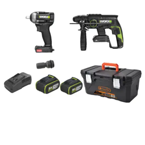 סט מקצועי ביותר מבית מותג העל WORX המכיל פטישון ומפתח רטיטה אשר מגיעים בארגז גדול